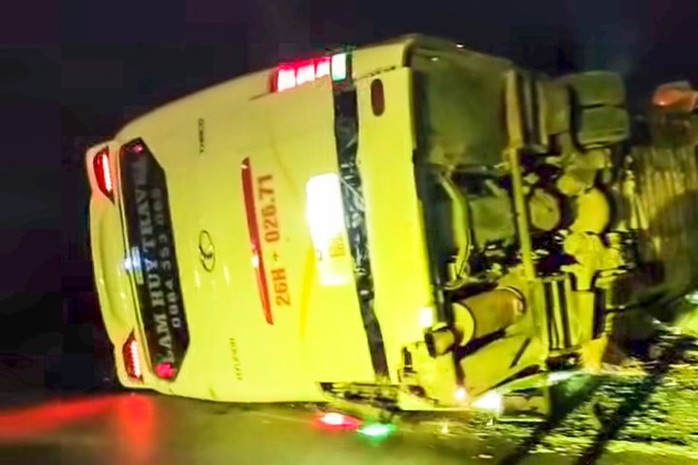 Mất phanh, xe khách chở 39 người bị lật khi xuống dốc