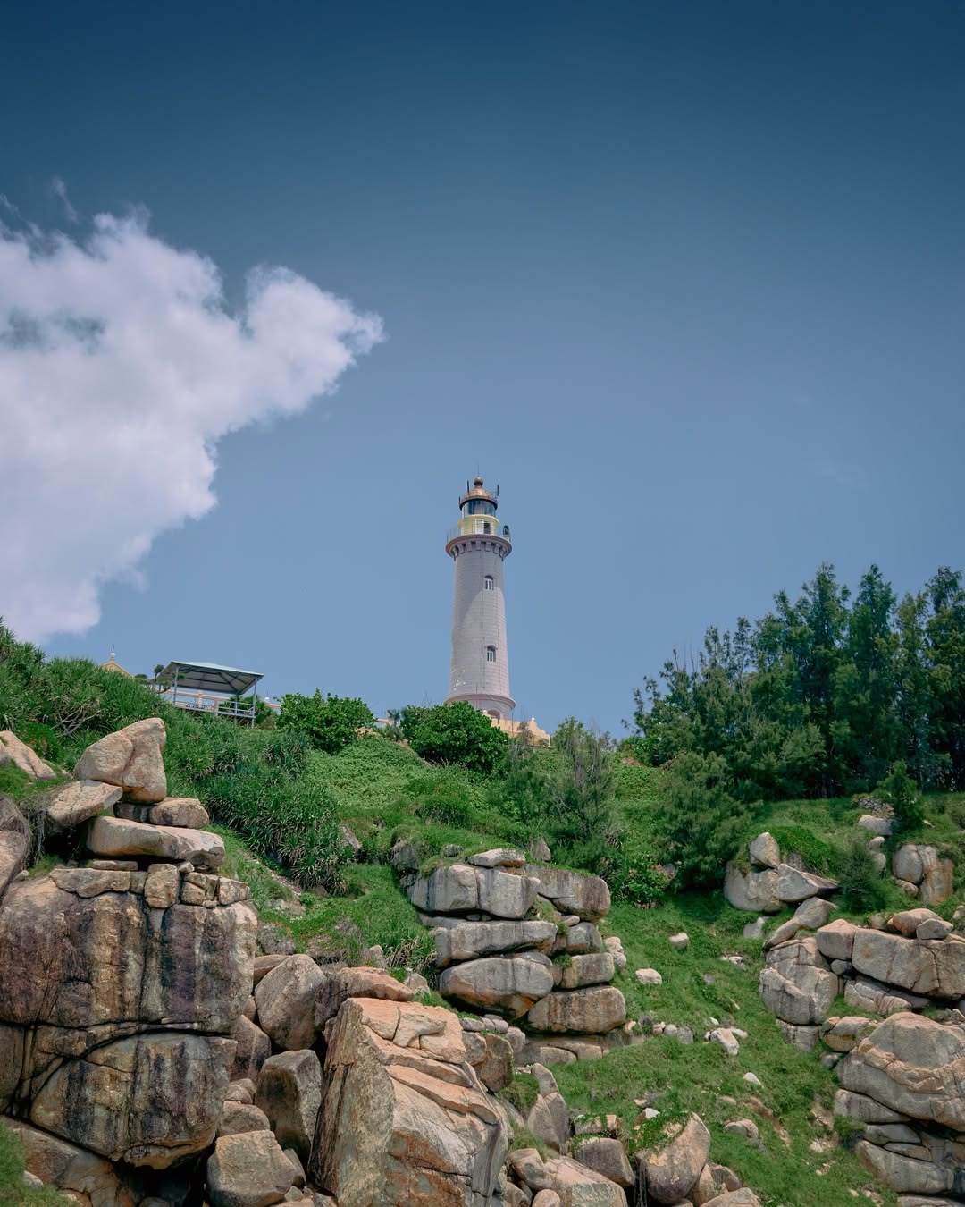 Ngọn hải đăng cao 26m, được người Pháp xây dựng từ năm 1890, mang một vẻ đẹp cổ kính giữa thiên nhiên hoang sơ. Tôi ngồi đó, nghe gió biển thổi vù vù, nhìn những con tàu đánh cá nhỏ xíu phía xa, và tự hỏi tại sao mình lại để tới hơn 30 năm cuộc đời mới biết đến nơi này.