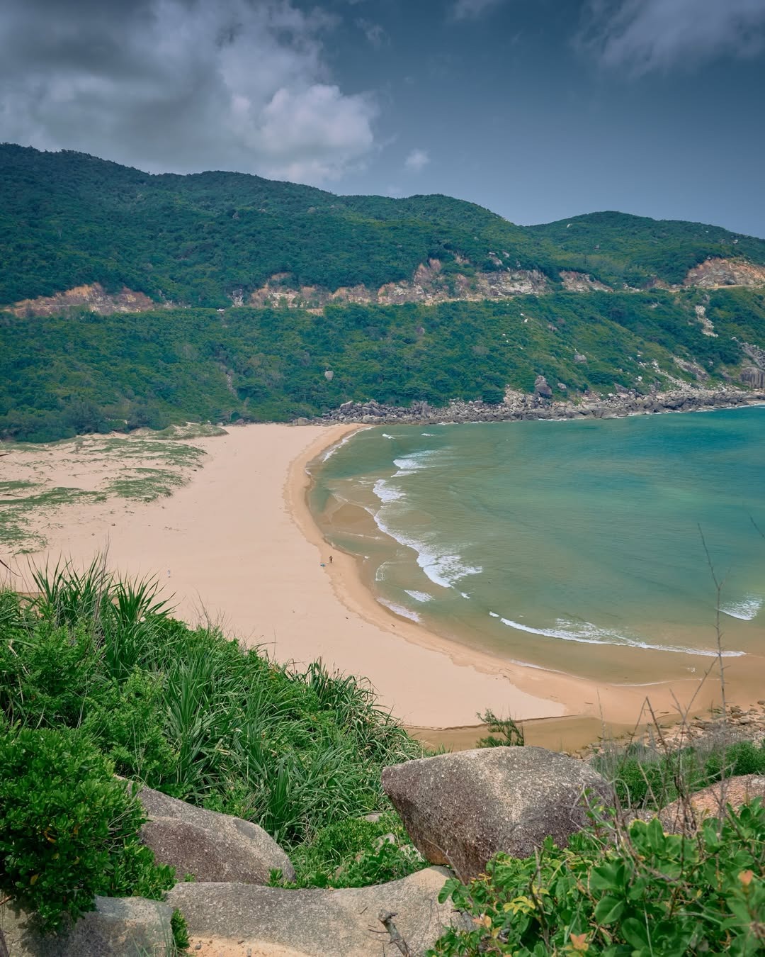 Xuống chân Mũi Điện là Bãi Môn - một bãi biển nhỏ hình lưỡi liềm, cát trắng mịn như kem, nước trong đến mức nhìn thấy cả những đàn cá nhỏ bơi lội. Khác với những bãi biển du lịch ồn ào, Bãi Môn vẫn giữ được vẻ hoang sơ đáng kinh ngạc. Tôi đã ngồi trên bãi cát suốt một tiếng đồng hồ, không làm gì cả, chỉ nghe tiếng sóng vỗ và để gió biển thổi tóc rối tung. Có những khoảnh khắc trong đời, không cần phải làm gì cả, chỉ cần ngồi yên là đủ.