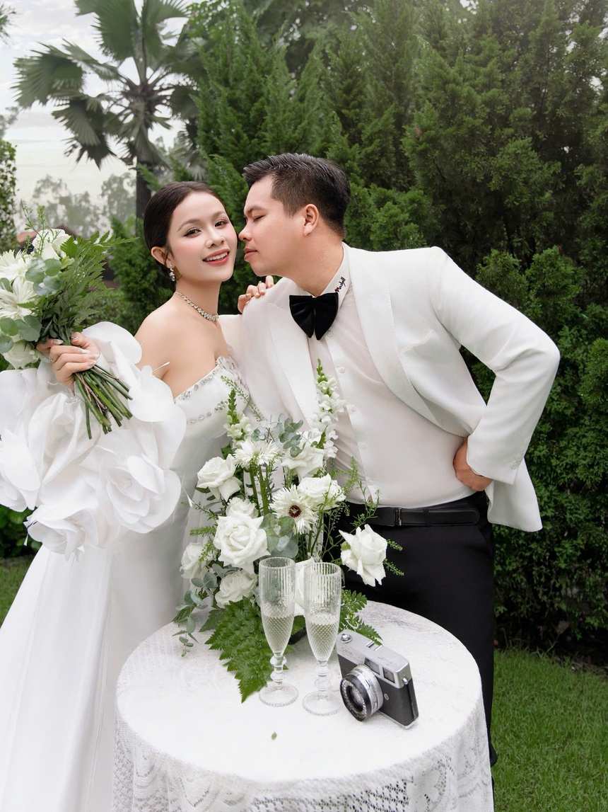 "Cô dâu rất ngại mạng xã hội nên cũng ít chia sẻ. Với chúng tôi, âm nhạc là nguồn năng lượng bên trong giúp cuộc sống vui vẻ, thú vị, chứ không hoạt động nhiều trên mạng", chú rể chia sẻ.