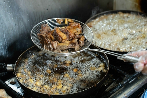 Bà Thuỷ nhập hàng từ mối quen tại Đông Anh. Khoảng 7-8h, nhân viên cùng người nhà tất bật sơ chế để mở cửa vào 10h30 hằng ngày. Ngan được luộc, chặt, tẩm ướp với nước sốt theo công thức riêng, sau đó chiên ngập dầu. Bà Thủy nói công thức tẩm ướp chỉ có bà và vợ chồng người cháu biết. Nhân viên thực hiện theo các bước hướng dẫn. Thành phẩm là những miếng ngan ngoài giòn, trong ngấm vị, thơm mùi tỏi và không đọng mỡ. |