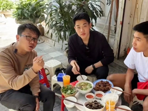 Tiền đạo Đình Bắc (giữa), cầu thủ vừa thi đấu thành công tại giải bóng đá U23 châu Á, là một trong những khách quen của ngan cháy tỏi Thủy Lương. Đình Bắc đến quán trước khi lên đường dự SEA Games 33 tại Thái Lan. Anh đi cùng một đồng đội của tuyển trẻ Việt Nam. Trước đó, trong lần đầu tiên được ăn thử ngan cháy tỏi, tiền đạo của CLB Công An Hà Nội liên tục khen ngon. "Bắc ăn ba đĩa trong lần đầu và còn mua mang về", chủ quán cho hay. Thủ thành Trung Kiên và trung vệ Lý Đức đều gọi hai đĩa. |