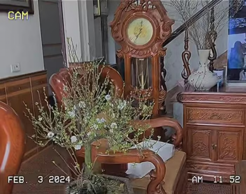 Phòng khách được thiết kế đơn giản kiểu truyền thống với nội thất và sàn nhà bằng gỗ, tường dán giấy hoa văn nhẹ nhàng |