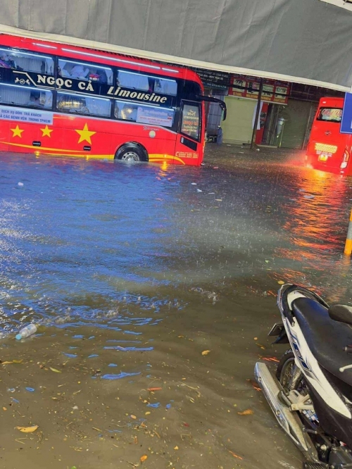 Trong khi nhiều xe máy phải quay đầu hoặc leo lên vỉa hè để tránh bị nước cuốn, không ít ôtô phải dừng giữa đường, không dám đi tiếp. Điều này khiến giao thông trên quốc lộ 1 ùn tắc cục bộ, kéo dài vài trăm mét. Khoảng 20 phút sau khi mưa tạnh, nước bắt đầu rút nhanh và giao thông dần ổn định trở lại.