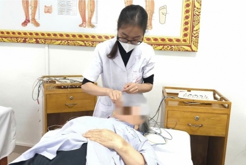 Bác sĩ thăm khám, điều trị liệt dây thần kinh số 7 cho bệnh nhân. Ảnh: Đặng Thanh |