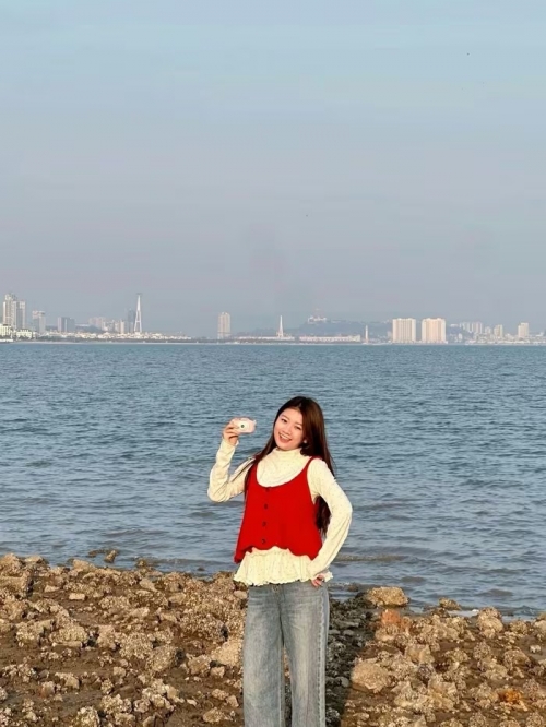 Hồng Phượng check-in tại bãi cào ngao. Ảnh: Bùi Thị Hồng Phượng. |