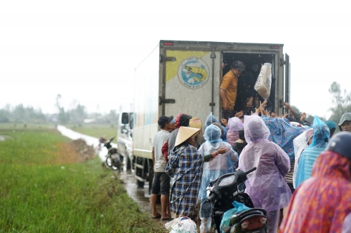 Anh Danh - một thành viên trong đoàn thiện nguyện đến từ TP HCM chia sẻ "Trước khi đến đây thì đoàn mình có xem kĩ càng thông tin đường sá để xem mình tiếp cận được đến đâu. Trên hành trình di chuyển thì rất may những xe cứu trợ được ưu tiên nhường cho, dễ thương vô cùng. Hàng cứu trợ thì nhóm mình chuẩn bị nhanh lắm, cứu trợ mà nên phải rốp rẻng. Đồ dùng thì có cháo, đồ ăn, sữa, mì tôm ,... và cả băng vệ sinh cho chị em phụ nữ nữa".