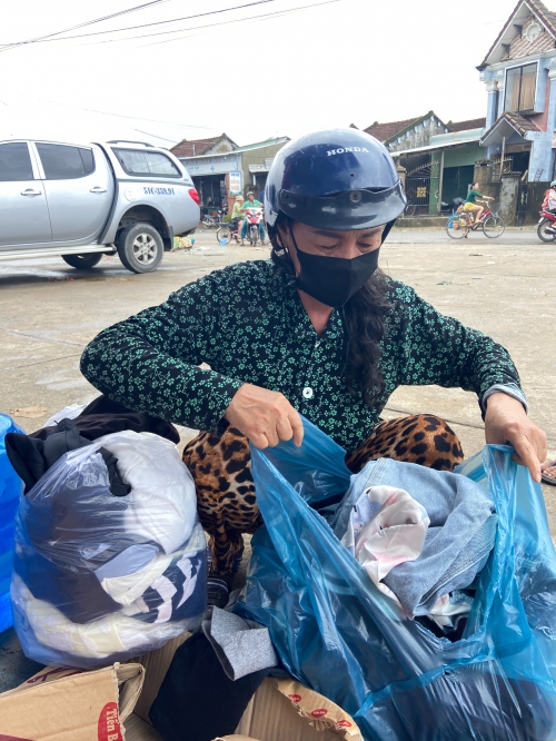 Không chỉ lương thực phẩm mà nhiều người dân cần cả quần áo để thay vì đồ đạc đã bị lũ cuốn trôi hết, nhưng thứ còn lại thì ẩm ướt chẳng thể mặc |
