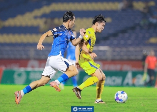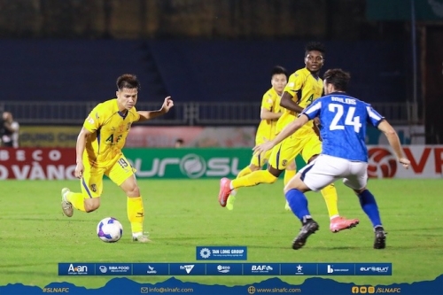 SLNA (áo vàng) trong trận đấu với Becamex TP.HCM. Ảnh: FBNV |