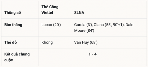 Chiến thắng này giúp SLNA cải thiện đáng kể vị trí trên bảng xếp hạng, trong khi Thể Công Viettel sẽ còn rất nhiều việc phải làm để lấy lại niềm tin nơi người hâm mộ sau màn trình diễn thiếu thuyết phục ngay tại Thủ đô.