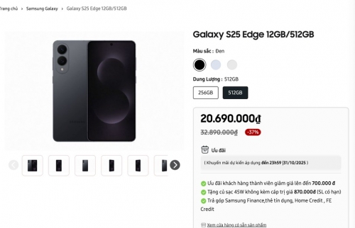 Hơn 4 tháng từ lúc bán chính hãng tại Việt Nam, Galaxy S25 Edge giảm sâu khi được bán rộng rãi ở nhiều đại lý. Dòng điện thoại siêu mỏng tiên phong từ Samsung được niêm yết lần lượt ở mốc 30 và 33,5 triệu đồng. Khác biệt chủ yếu nằm ở dung lượng bộ nhớ trong. Sản phẩm xuất hiện giữa giai đoạn thị trường thấp điểm, được kỳ vọng giúp thương hiệu Hàn Quốc vực dậy doanh số flagship.