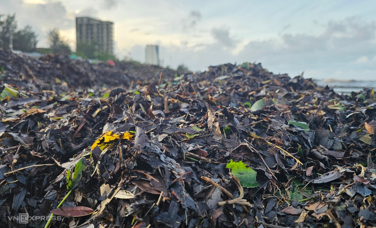 Bãi biển Nhật Lệ ken đặc rác sau bão