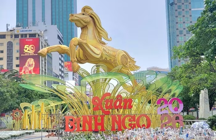 Linh vật ngựa với đủ kích thước, hình dạng khác nhau được tạo dựng, đặt ở nhiều nơi trên địa bàn TP. Hồ Chí Minh để chào đón Tết Nguyên đán Bính Ngọ năm 2026.