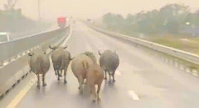 Đàn trâu thả rông ‘tung tăng’ trên cao tốc Bắc - Nam