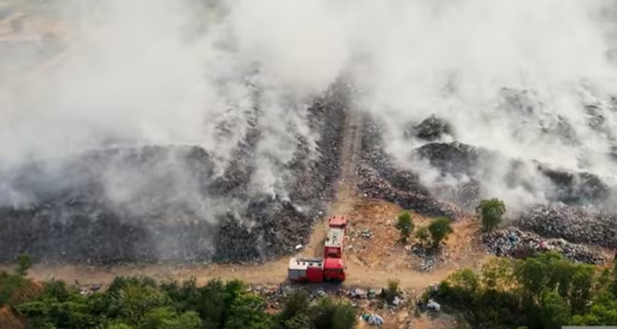 'Núi rác' rộng khoảng 2ha tại Nghệ An cháy âm ỉ nhiều ngày, khói trắng đục kèm mùi hôi nồng nặc lan vào khu dân cư, ảnh hưởng đến đời sống của người dân. Sau nửa tháng cháy âm ỉ, đám cháy đã được dập tắt hoàn toàn.