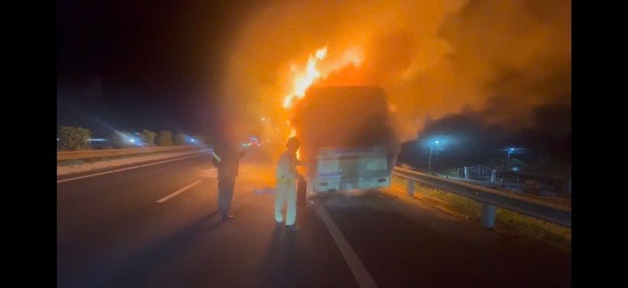 Xe khách cháy trơ khung trên đường cao tốc TP HCM - Trung Lương