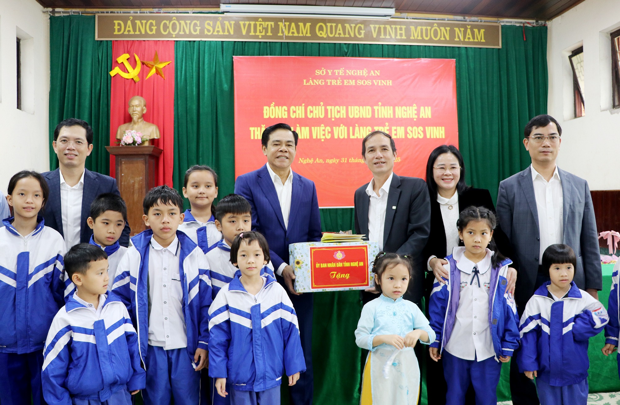 Nhân dịp Tết Dương lịch và Tết Nguyên đán năm 2026, sáng nay (31/12), đồng chí Chủ tịch UBND tỉnh Võ Trọng Hải đã đến thăm, tặng quà Làng trẻ em SOS Vinh và Trung tâm Điều dưỡng Thương binh Nghệ An. Cùng đi có các đồng chí lãnh đạo các Sở, ngành liên quan và Văn phòng UBND tỉnh.