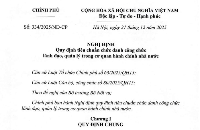 Chính phủ vừa ban hành Nghị định số 334 quy định tiêu chuẩn chức danh công chức lãnh đạo, quản lý, trong đó có chức danh Thứ trưởng, Cục trưởng...