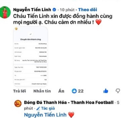 Tiến Linh, Bùi Tiến Dũng ủng hộ CLB bóng đá Đông Á Thanh Hoá