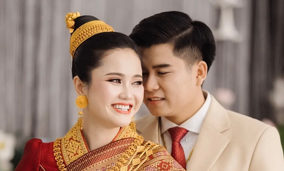 Giọng hát của Nounnapha vang lên trong lễ cưới tại Viêng Chăn khiến nhiều khách mời bất ngờ. Ca khúc tiếng Việt được cô chuẩn bị đặc biệt để dành tặng chú rể trong ngày trọng đại.