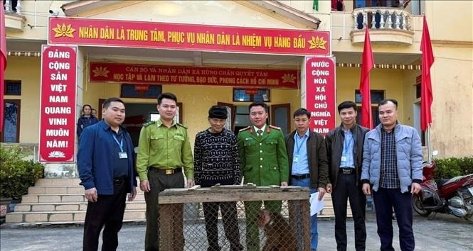 Ngày 25/11, một người dân trên địa bàn xã Hùng Chân (Nghệ An) đã giao nộp con khỉ mặt đỏ trưởng thành cho lực lượng chức năng để chăm sóc, hoàn tất hồ sơ, thủ tục trước khi thả về môi trường tự nhiên.