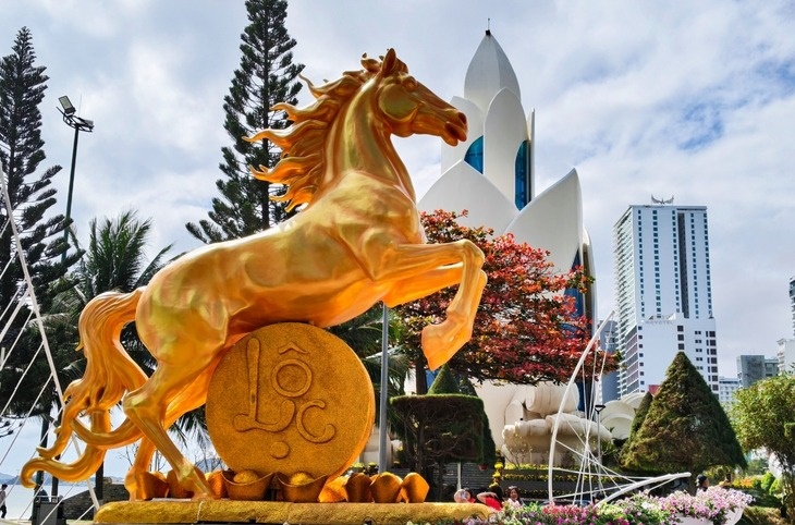 Linh vật ngựa ở Nha Trang chính thức lộ diện với hình tượng ngựa vàng, ngựa bạc cùng nhiều tiểu cảnh trang trí thu hút du khách.