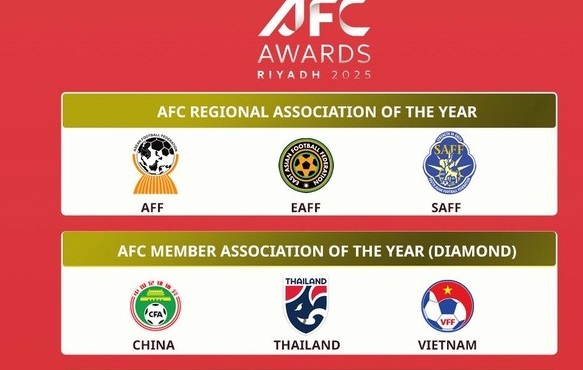 Việt Nam góp mặt ở 2 hạng mục tập thể trong danh sách đề cử AFC Awards Riyadh 2025, sự kiện tôn vinh những cá nhân và tổ chức có đóng góp nổi bật cho bóng đá châu lục.