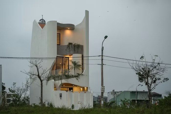 Những đường cong mềm mại từ mặt tiền đến bố cục bên trong khiến ngôi nhà trở nên đặc biệt giữa thành phố Đà Nẵng.