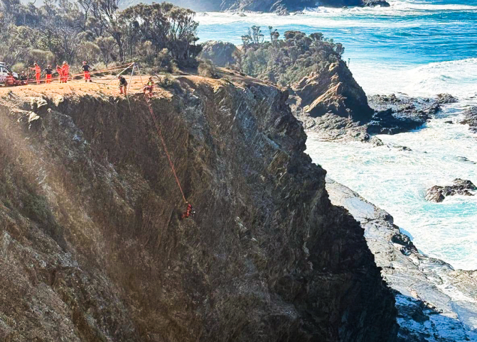 Các nhân viên cứu nạn bang New South Wales lần lượt đu dây để giải cứu gia đình 7 người mắc kẹt nhiều giờ trên vách đá cheo leo sát biển.