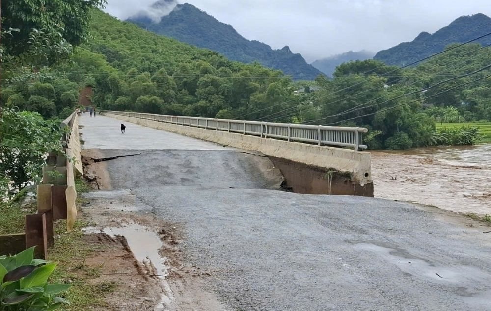 Ngày 29/9, tin từ UBND xã Sơn Thủy, tỉnh Thanh Hóa cho biết, tại cầu Sơn Thủy đã xảy ra tình trạng sụt lún nghiêm trọng ở đầu cầu.