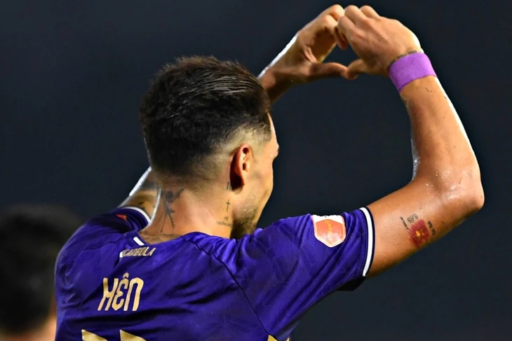 Đỗ Hoàng Hên dành tặng bàn thắng ghi cho CLB Hà Nội tối 12-4 cho cậu bé mắc bệnh hiểm nghèo.