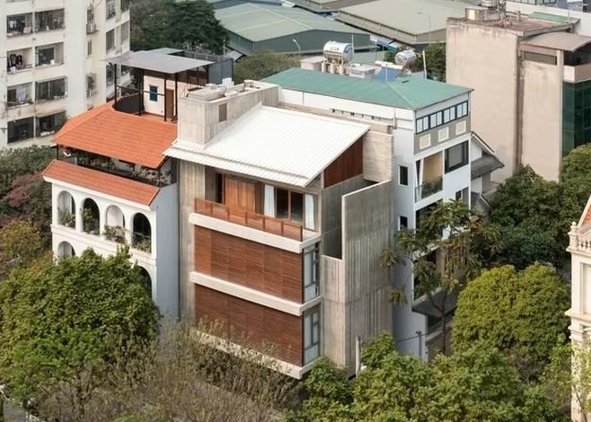Nhờ thiết kế khéo léo hệ lam mặt tiền bên ngoài, kết hợp thông tầng bên trong, ngôi nhà luôn thoáng mát, thích nghi với khí hậu nhiệt đới.