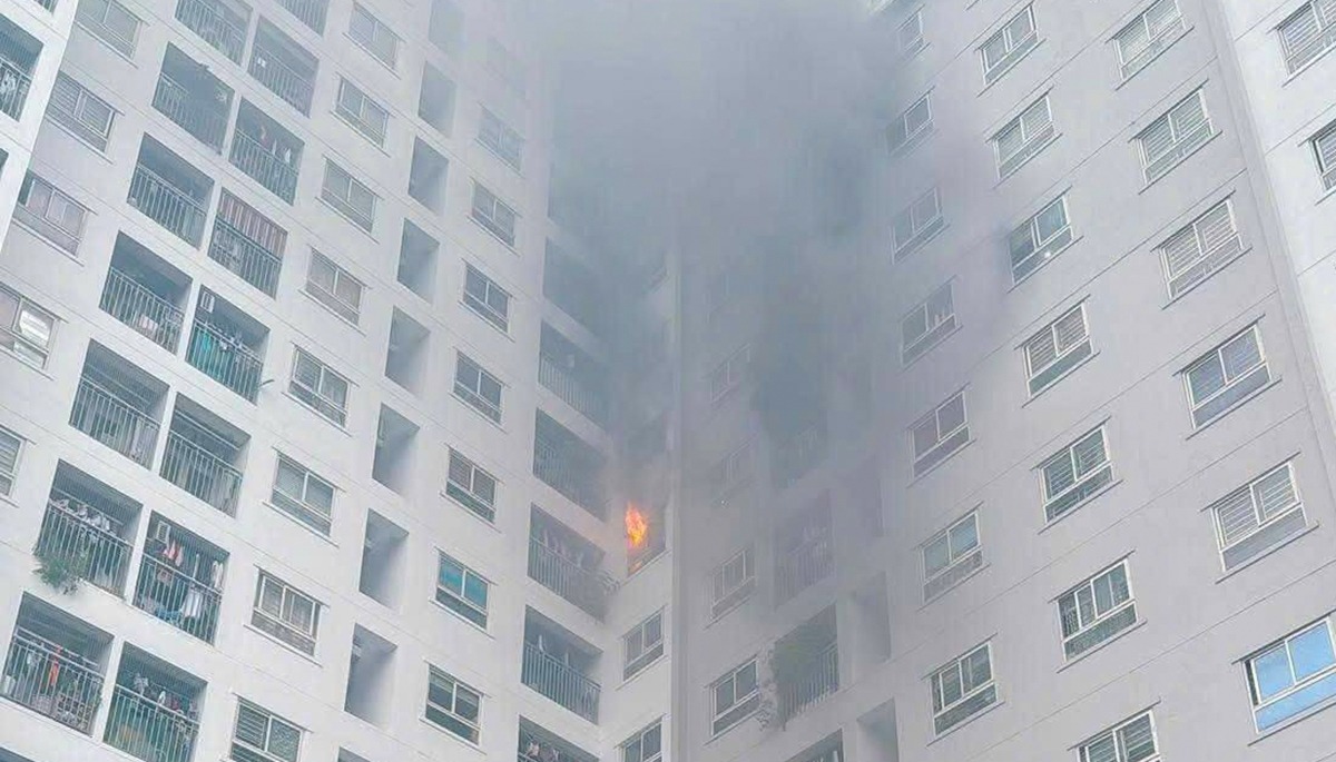 Cháy căn hộ trên tầng 9 chung cư Ecohome 2, cư dân hoảng hốt tháo chạy