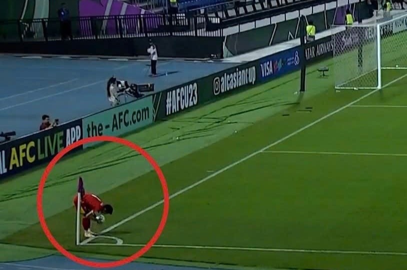Khoảnh khắc Đình Bắc hôn bóng trước khi tung cú sút phạt khiến dân mạng thích thú. Đây không phải lần đầu hành động này của anh gắn với một bàn thắng cho U23 Việt Nam.