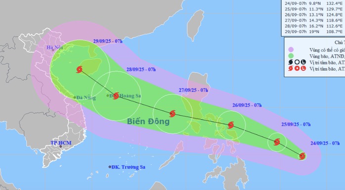 Theo Trung tâm Dự báo khí tượng thủy văn quốc gia, đêm 23-9, áp thấp nhiệt đới phía Đông Philippines đã mạnh lên thành bão, có tên quốc tế Bualoi.
