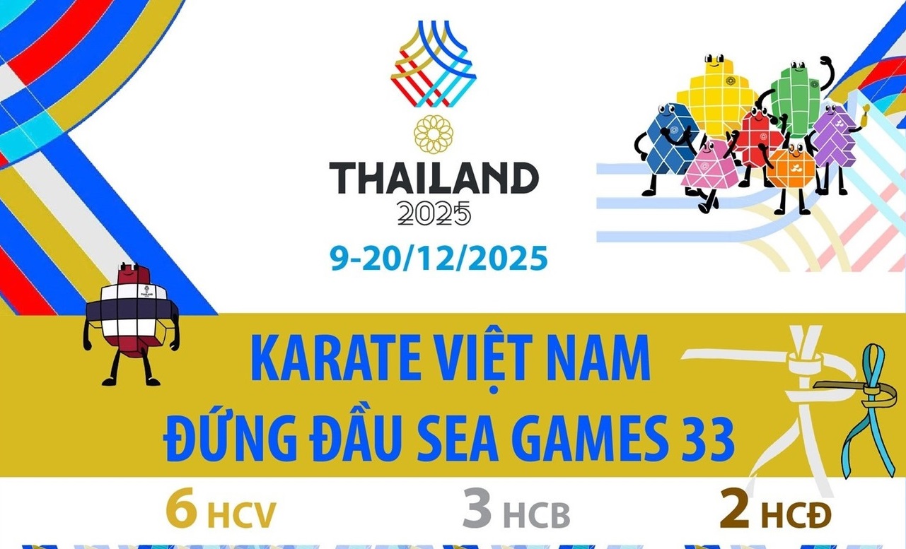 Đội tuyển karate Việt Nam giành 6 Huy chương Vàng tại SEA Games 33, đứng đầu bảng xếp hạng cùng Thái Lan trong kỳ đại hội thể thao khu vực.