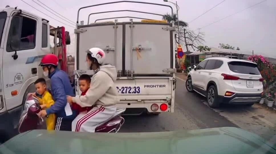 Cả gia đình suýt rước họa vì lỗi len lỏi khi đi xe máy