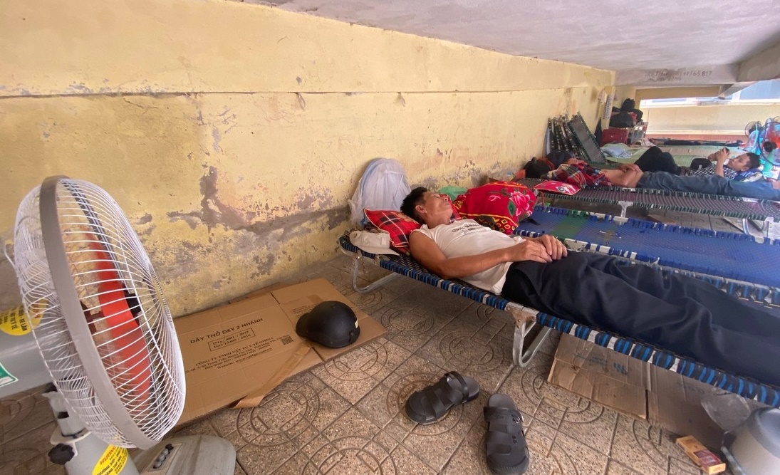 Người nhà bệnh nhân nằm gầm cầu thang tránh nắng nóng 40 độ C