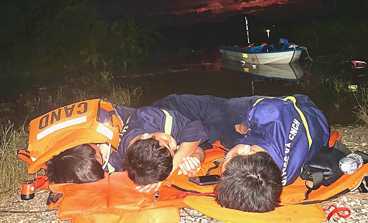Xúc động khoảnh khắc 3 chiến sĩ công an Nghệ An ngủ vội giữa tâm lũ
