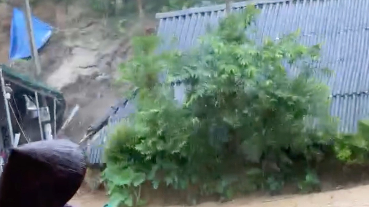 Khoảnh khắc nhà sàn ở Thanh Hóa bị đánh sập trong mưa lũ