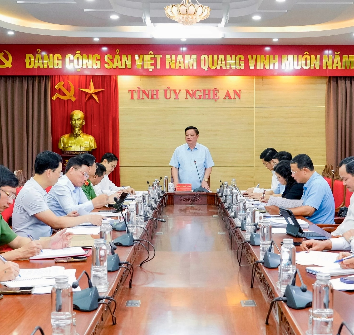 Ngày 28/4, Ủy viên Trung ương Đảng, Bí thư Tỉnh ủy, Trưởng Đoàn ĐBQH tỉnh Nguyễn Khắc Thận đã chủ trì phiên họp Thường trực Tỉnh ủy Nghệ An để nghe và cho ý kiến một số nội dung quan trọng thuộc thẩm quyền.