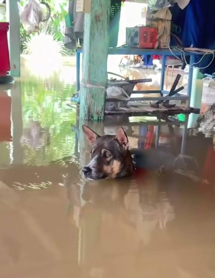 Hình ảnh chú chó đứng lặng giữa dòng nước lũ đã dâng đến cổ, ánh mắt buồn bã khiến dân mạng không khỏi xót xa. Tuy nhiên, hình ảnh đang lan truyền với nhiều thông tin sai lệch.