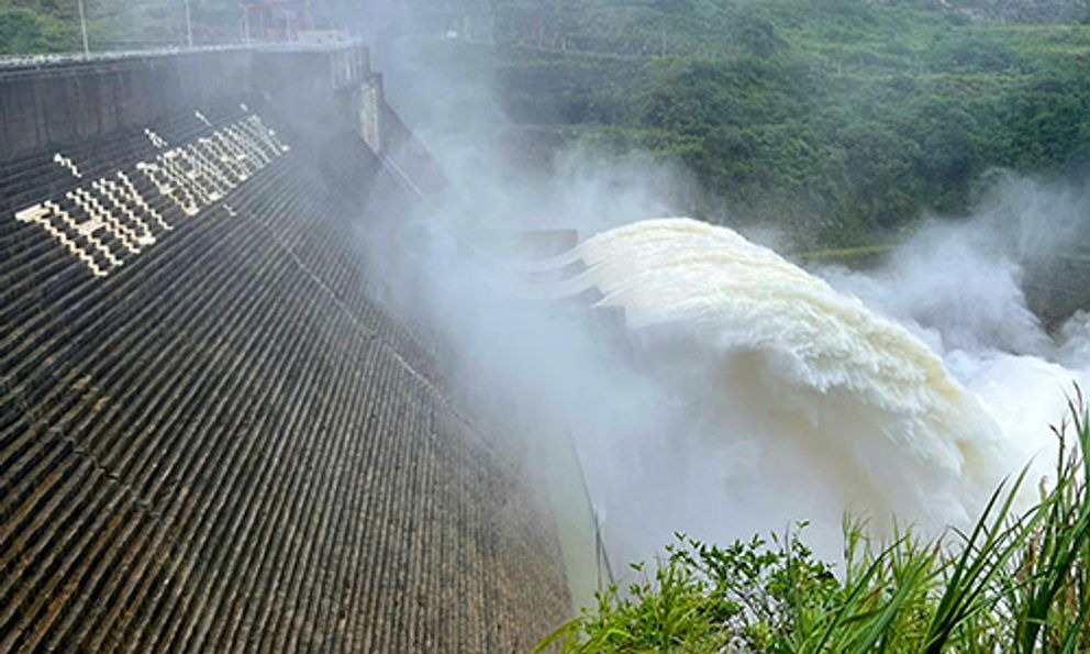 Trước dự báo sẽ có một đợt mưa lớn do ảnh hưởng của cơn bão số 5 (Kajiki), thủy điện Bản Vẽ, Nghệ An đang xả nước ngày 22-8.