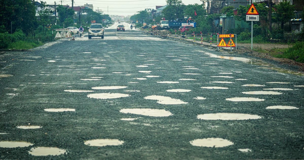 Sau nhiều ngày mưa lớn, đoạn Quốc lộ 1 dài hơn 3 km qua xã Kỳ Khang (Hà Tĩnh) đang trong quá trình nâng cấp, sửa chữa đã xuất hiện hàng trăm ổ gà, ổ voi, gây khó khăn cho phương tiện lưu thông và tiềm ẩn nguy cơ mất an toàn giao thông.