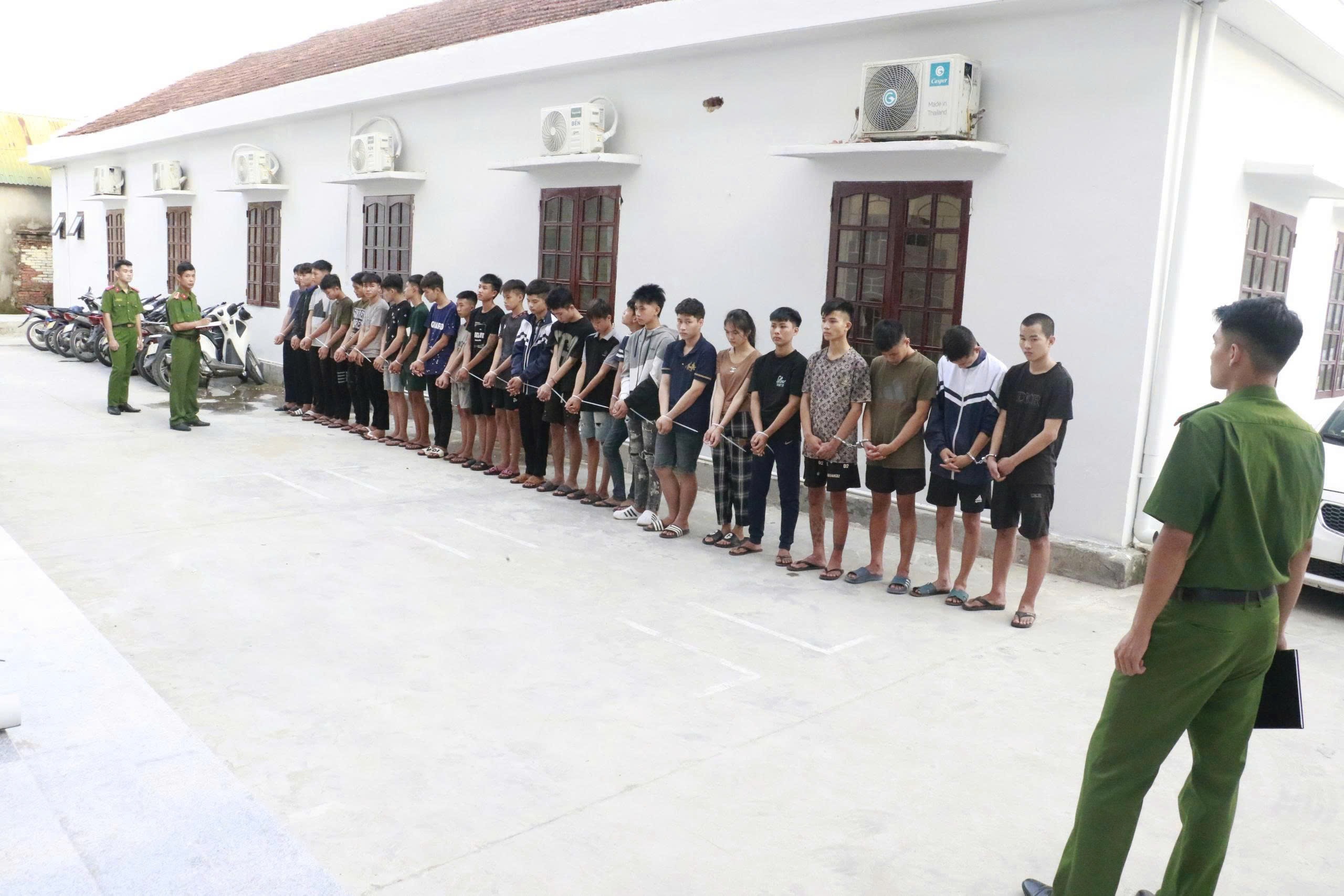Bắt hàng chục đối tượng từ Hà Tĩnh sang Nghệ An "Gây rối trật tự công cộng và Cố ý làm hư hỏng tài sản" Phòng Cảnh sát hình sự Công an tỉnh Nghệ An đã bắt nhóm 24 đối tượng trú tại tỉnh Hà Tĩnh mang theo nhiều hung khí sang địa bàn tỉnh Nghệ An “Gây rối trật tự công cộng và Cố ý làm hư hỏng tài sản”.