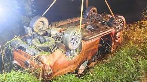 Xe ô tô bán tải đang lưu thông bất ngờ lao xuống suối sâu bên đường lật ngửa khiến 2 người tử vong, 2 người bị thương.