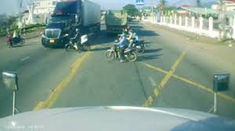 Lao sang ngang đường, người đi xe máy đâm vào xe đầu kéo, hôm 5/2 tại xã Ngô Mây.