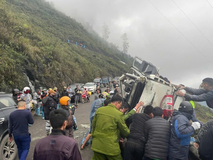 Xe ô tô bán tải gặp nạn dập nát, 3 người bị thương