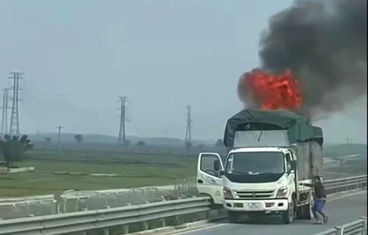 Đang lưu thông trên tuyến cao tốc đoạn Hàm Nghi - Vũng Áng (Hà Tĩnh), chiếc xe tải bất ngờ bốc cháy dữ dội, rất may tài xế kịp thoát ra ngoài an toàn.