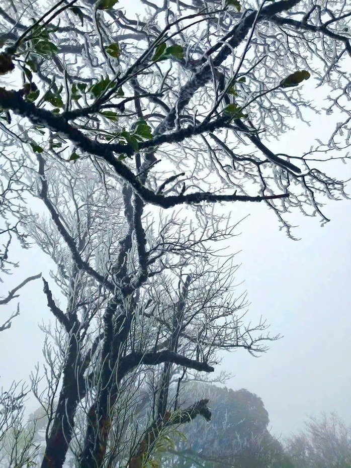 Với mức nhiệt -1,4 độ C, đỉnh Mẫu Sơn xuất hiện băng giá. Cơ quan khí tượng dự báo đêm nay, khu vực này sẽ có mưa tuyết.